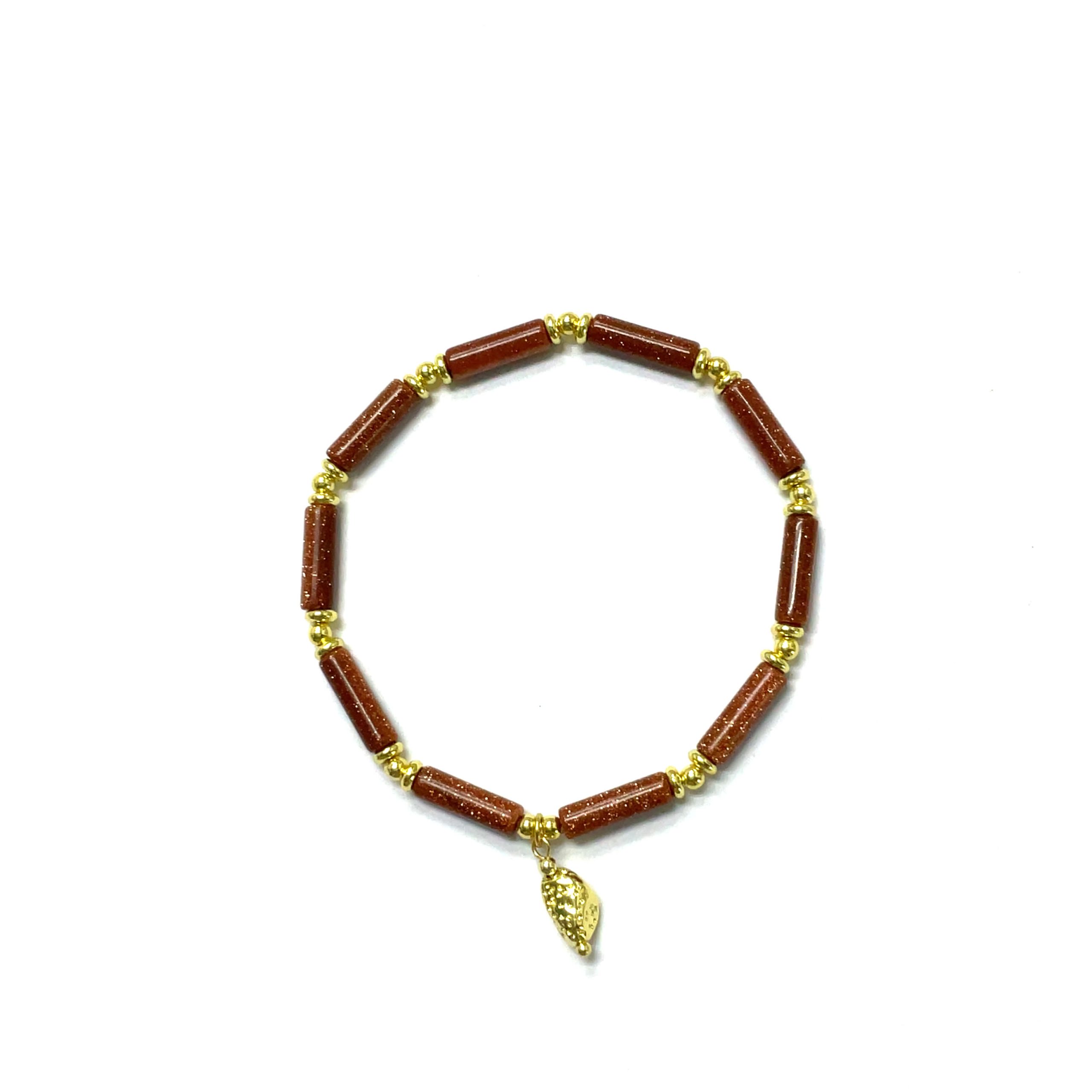 产品名称(英文)Goldstone Column & Brass Bead Leaf Pendant Bracelet
